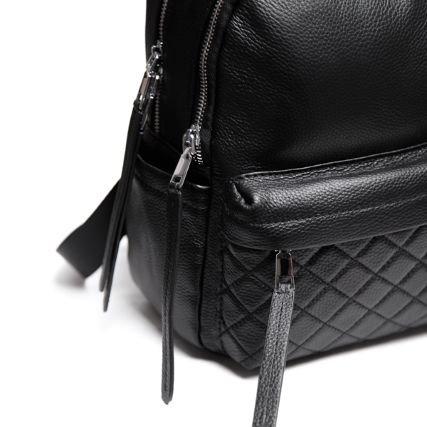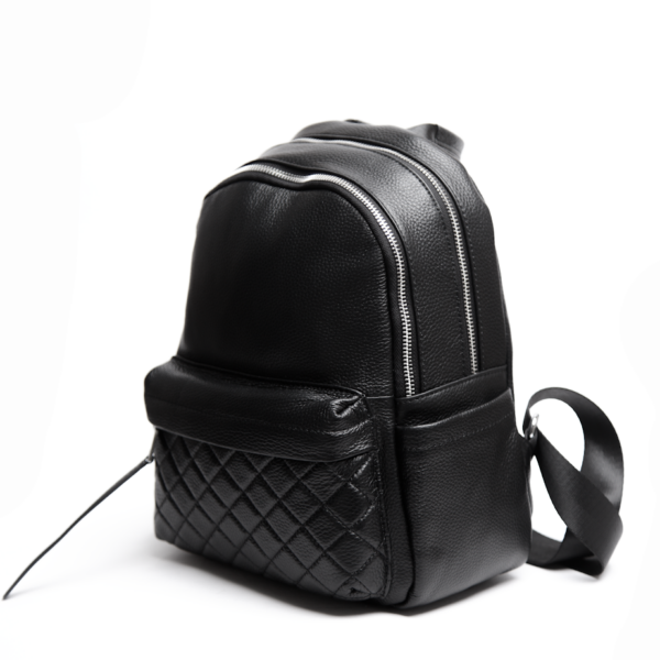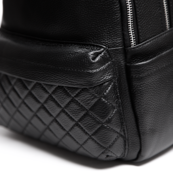 Рюкзак з фактурною стьобаною кишенею — стильний і практичний аксесуар, який залишиться з вами надовго. Лаконічний дизайн із мінімалістичними лініями та акуратною прострочкою виглядає стримано й сучасно. Така модель гармонійно поєднується з діловими образами, пальтами, тренчами, а також легко вписується в повсякденні луки з джинсами та кросівками. М’яка зерниста текстура шкіри приємна на дотик і додає виробу преміального вигляду. Чорний колір та акуратна фурнітура легко інтегруються в базовий гардероб, підкреслюючи охайність і статусність образу. Такий рюкзак уже кілька сезонів залишається актуальним вибором для міста, подорожей і щоденних справ.