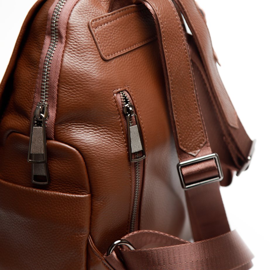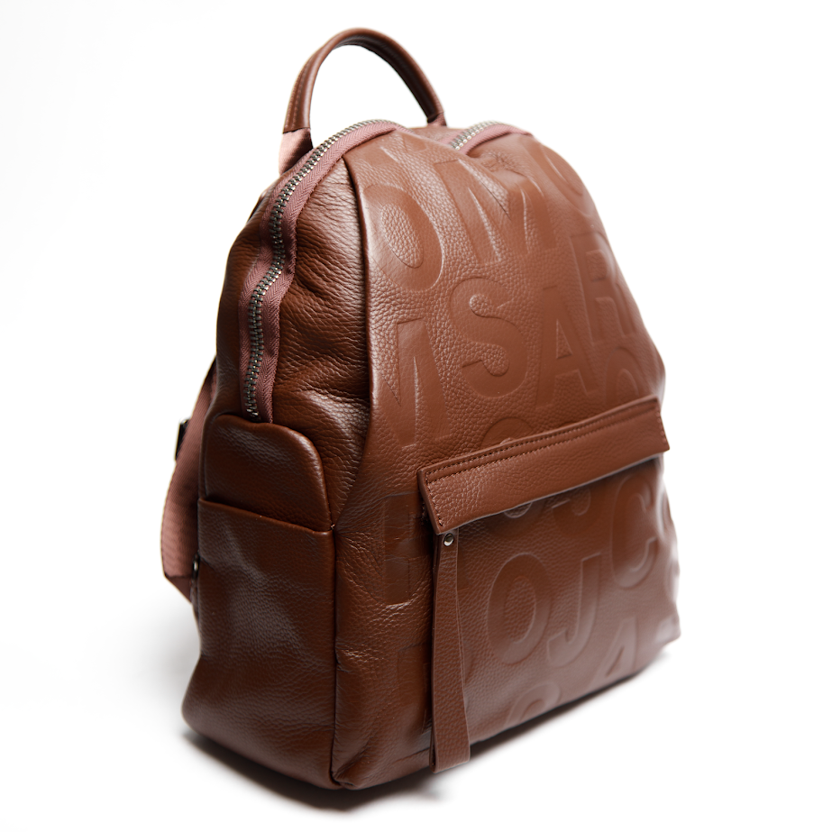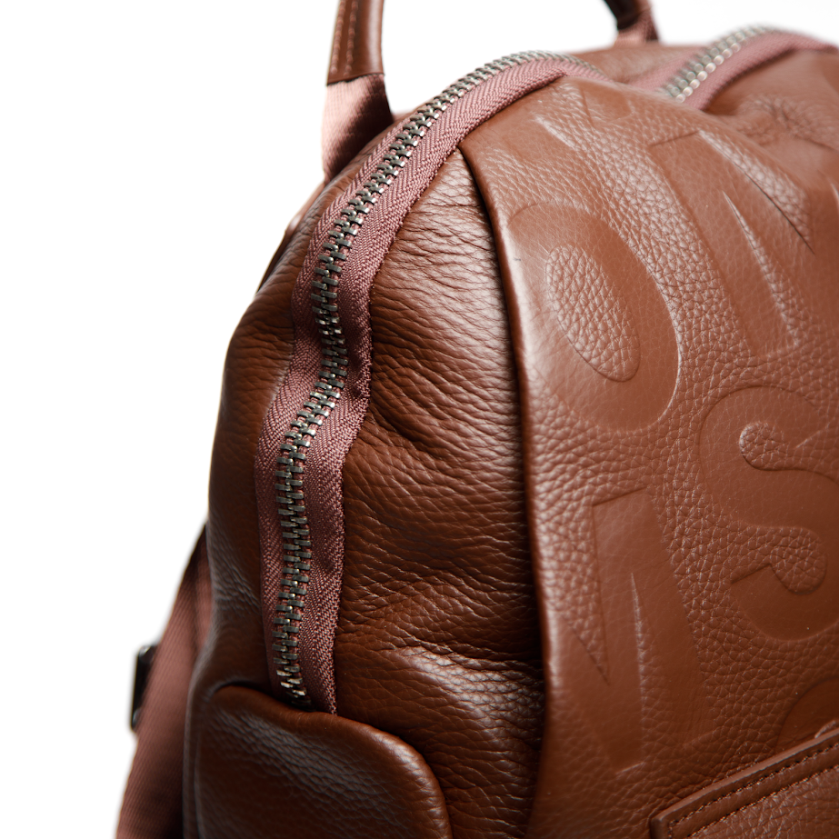 Рюкзак із натуральної коричневої шкіри з тисненим буквеним принтом — яскравий акцент у сучасному міському гардеробі. Об’ємний силует і виразна фактура з великими літерами створюють стильний, трохи зухвалий настрій, який чудово поєднується з кежуал-образами, шкіряними куртками, пальтами та базовими луками з джинсами. Гладка зерниста шкіра виглядає статусно й додає виробу глибини. Коричневий колір із глянцевими акцентами легко комбінується з різними стилями та відтінками одягу. Зручний формат і продумані кишені роблять цей рюкзак практичним для міста, роботи й активного ритму життя. Такий шкіряний рюкзак із тисненням — вибір для тих, хто любить помітні деталі та сучасну естетику.