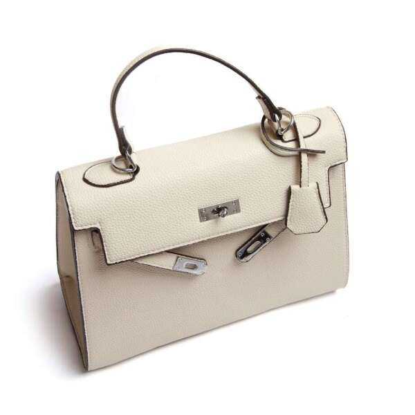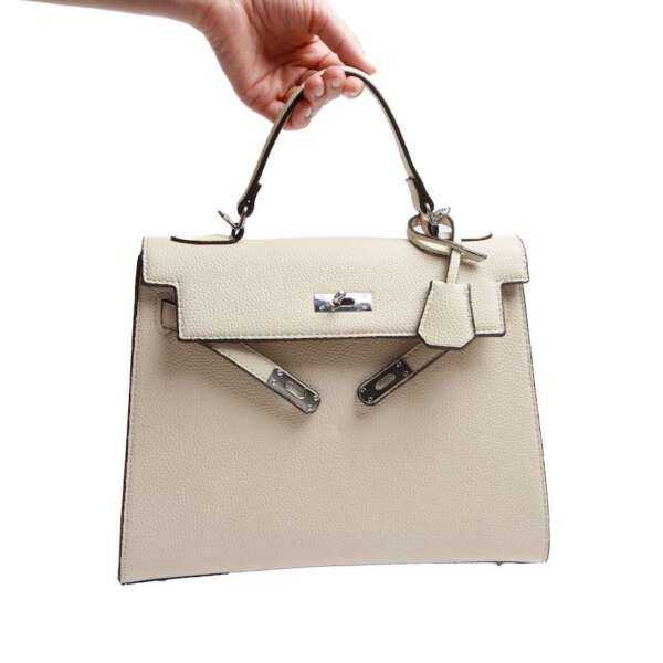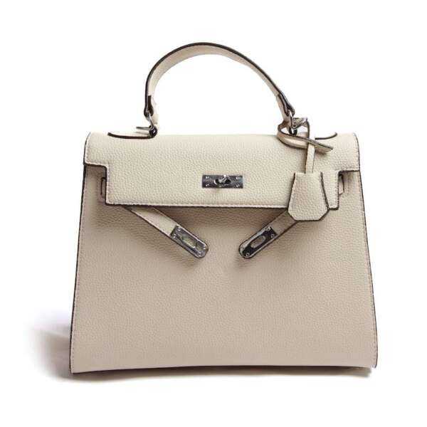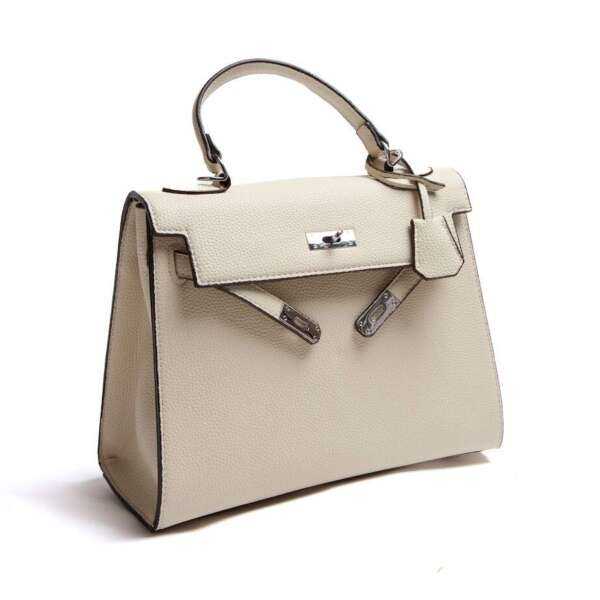 Жіноча сумка з екошкіри бежевого кольору — універсальний аксесуар для щоденного використання. Прямокутна форма та класичний дизайн роблять цю модель зручною й практичною. Сумка має міцну металеву застібку та зручну ручку, завдяки чому її можна носити в руці або на передпліччі. Внутрішній простір дозволяє розмістити всі необхідні речі, а нейтральний бежевий колір легко поєднується з будь-яким гардеробом. Це базова сумка, яка підійде як для роботи, так і для повсякденних виходів.