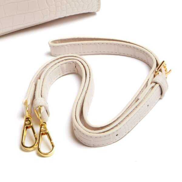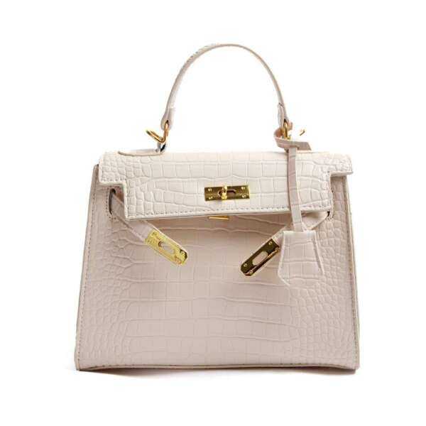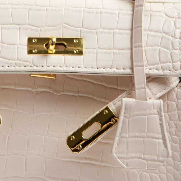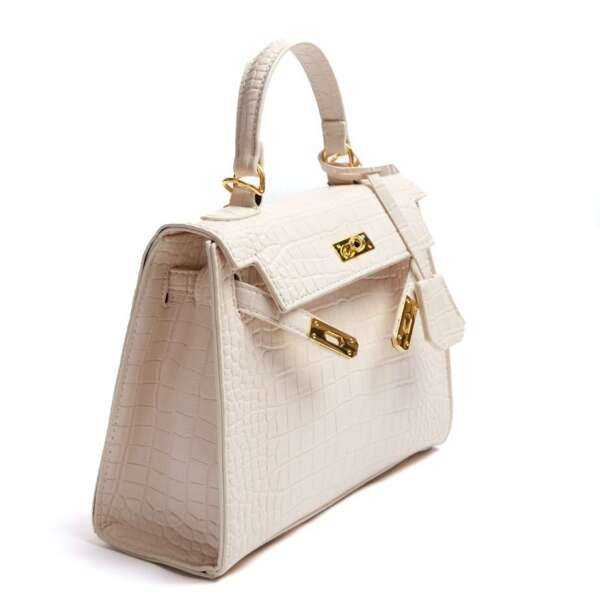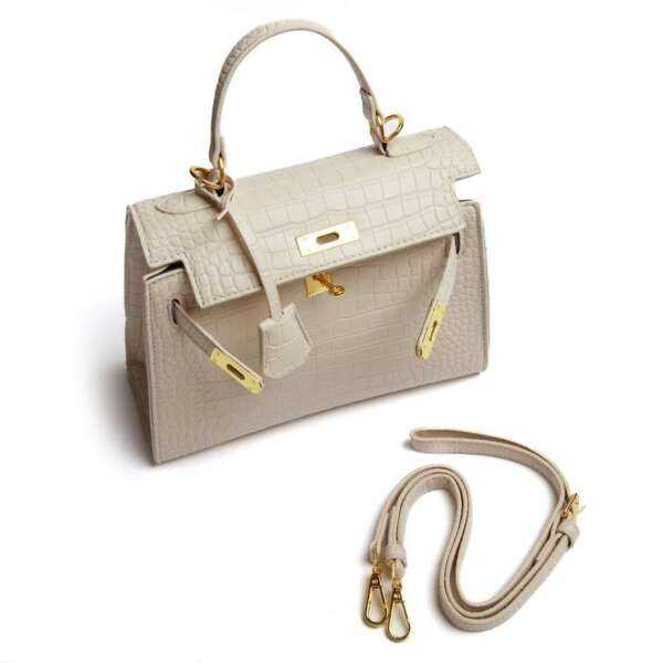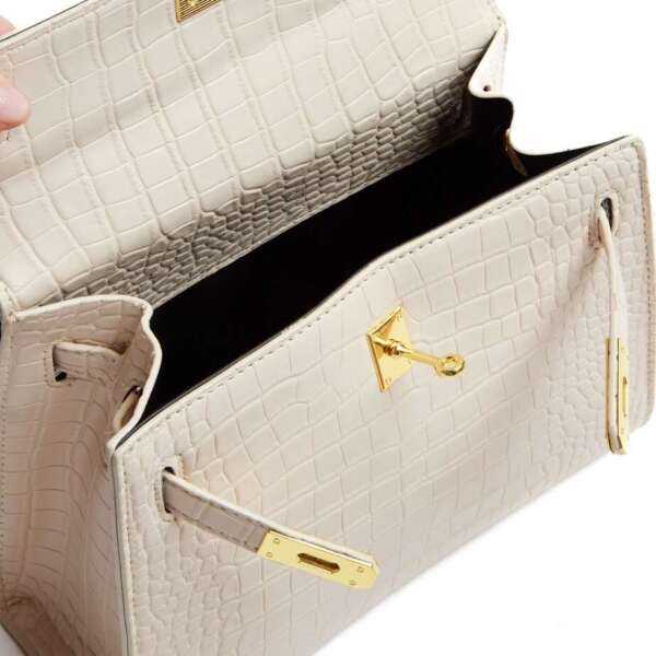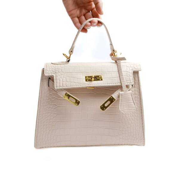 Жіноча сумка з екошкіри кремового кольору — завдяки фактурі під крокодилячу шкіру та золотистій фурнітурі ця модель виглядає особливо елегантно та підкреслює статус своєї власниці. Компактна форма та зручна ручка роблять сумку ідеальним вибором як для ділових зустрічей, так і для щоденного використання. Місткий внутрішній простір дозволяє зберігати всі необхідні речі, а продумана конструкція гарантує комфорт у користуванні. Така жіноча сумка з екошкіри стане стильним доповненням до будь-якого образу та базовим аксесуаром у вашому гардеробі.