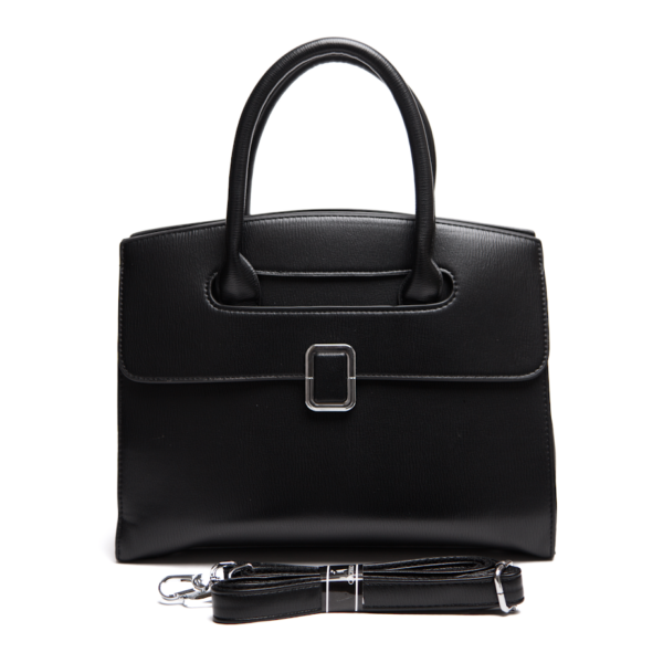 Сумка з екошкіри чорного кольору — елегантний аксесуар, який залишиться актуальним на багато сезонів. Лаконічний силует із жорсткою формою та акуратною застібкою виглядає стримано й стильно. Така модель гарно доповнює ділові образи з жакетами й сукнями, а також легко поєднується з повсякденними луками з джинсами та светрами. М’яка текстура екошкіри підкреслює акуратність і витонченість дизайну. Декор у вигляді металевої пряжки створює стильний акцент і робить сумку універсальною для різних стилів. Така жіноча чорна сумка вже кілька сезонів поспіль залишається популярним вибором для міста, роботи та прогулянок.