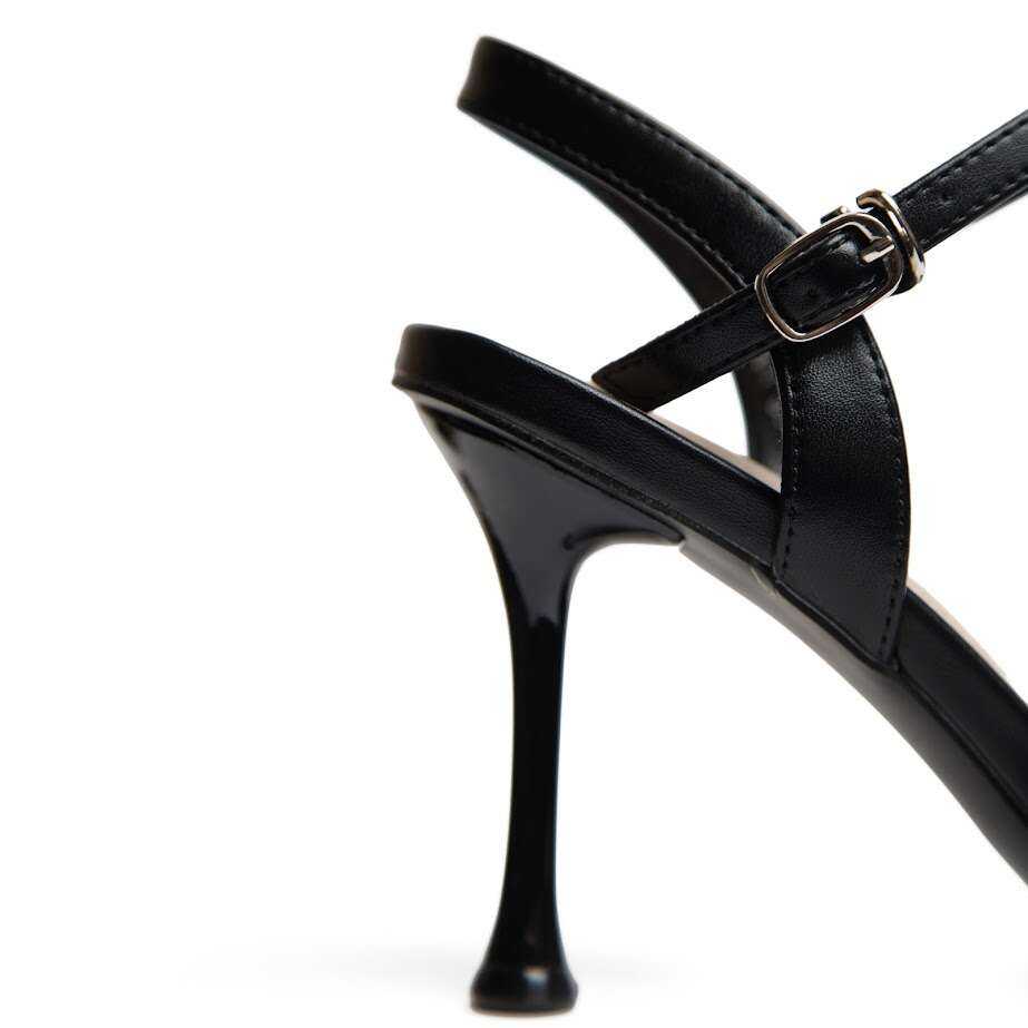 Чорні босоніжки з екошкіри на шпильці — втілення жіночності та елегантності. Ця модель з лаконічним дизайном та тонкими ремінцями стане вишуканим акцентом вашого вечірнього образу або стильного повсякденного аутфіту. Регульований ремінець на щиколотці дарує надійну фіксацію та комфорт під час ходьби. Якісна екошкіра проста у догляді та дозволяє парі тривалий час зберігати бездоганний вигляд. Такі чорні босоніжки — це незамінна база, яка гармонійно поєднується з сукнями, спідницями та навіть джинсами.