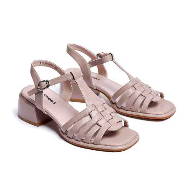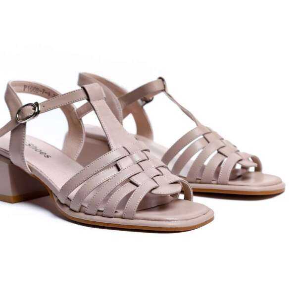 - Босоніжки зі шкіри бежевого кольору