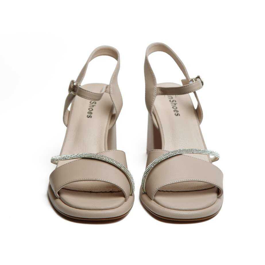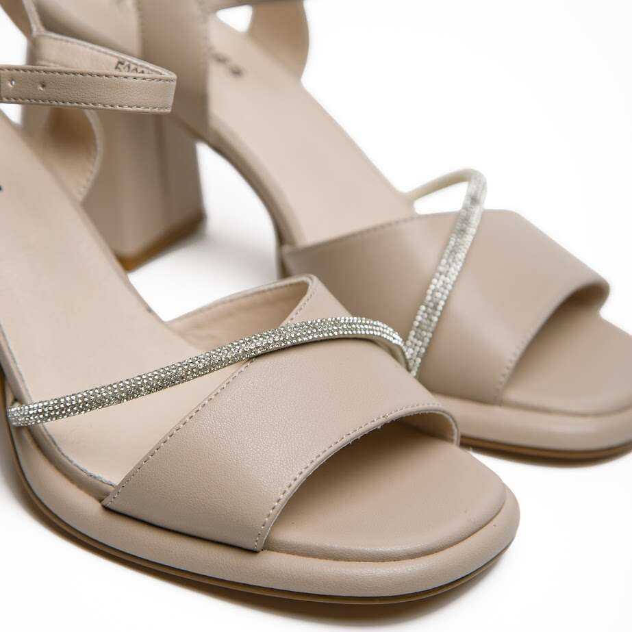 - Босоніжки На Каблуці Бежеві З Декором Зі Стразів