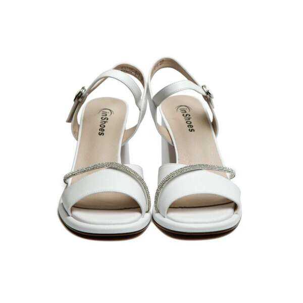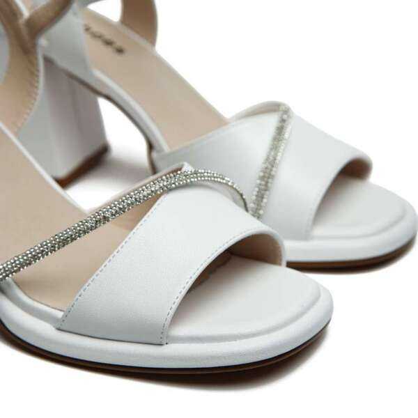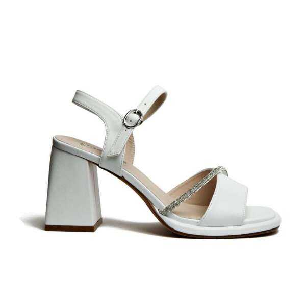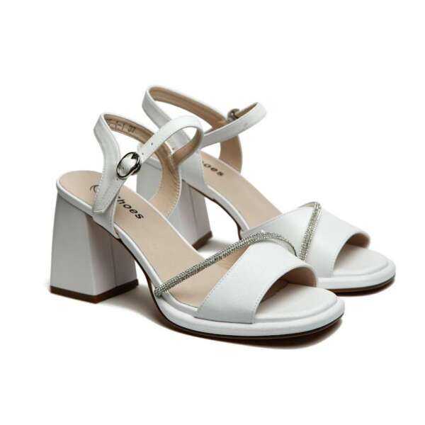 - Босоніжки На Каблуці Білі З Декором Зі Стразів