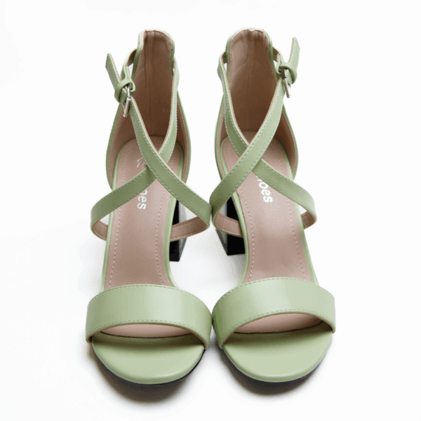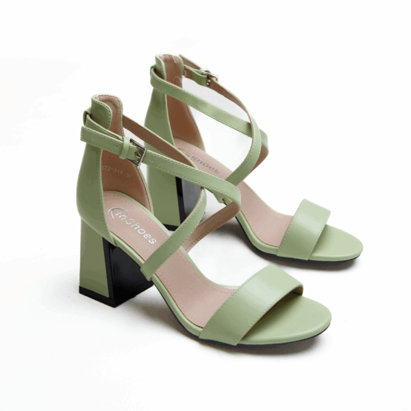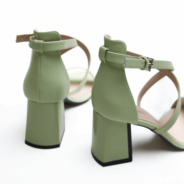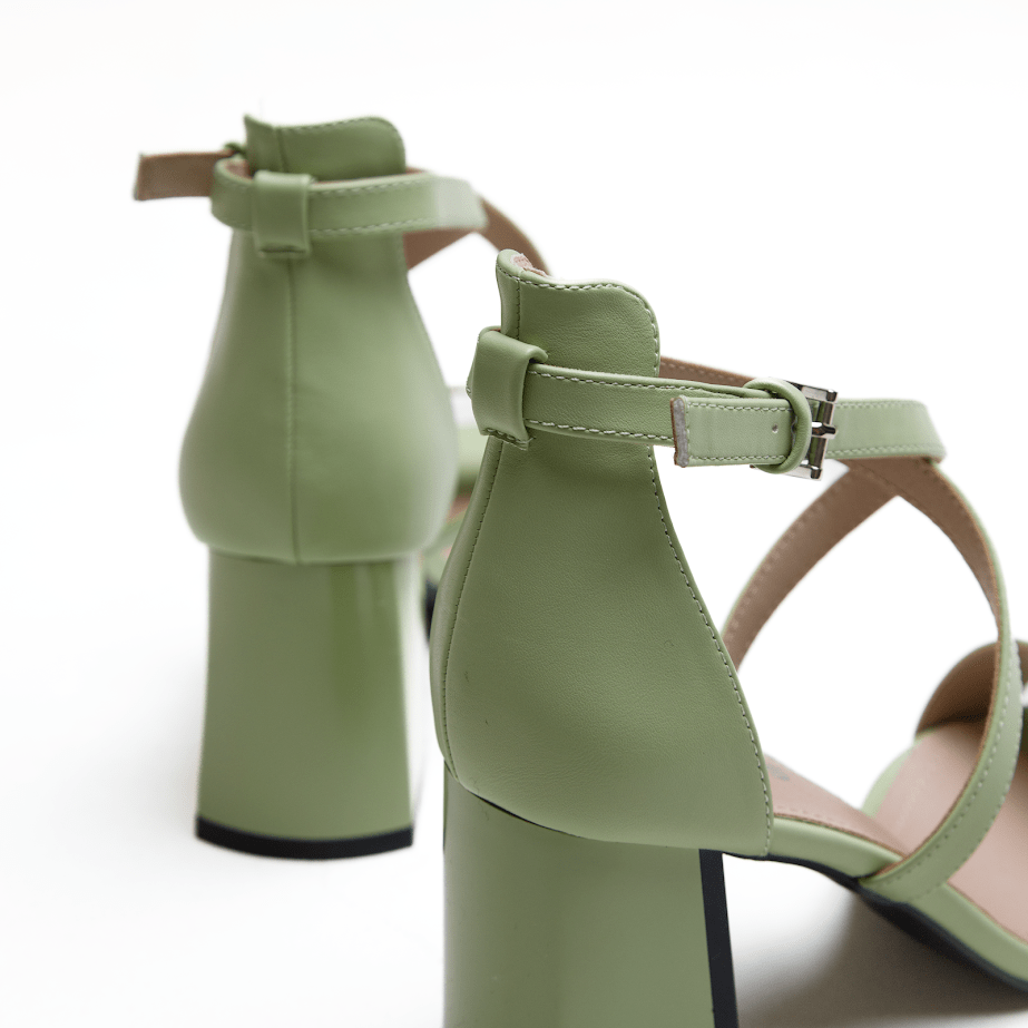 Жіночі босоніжки на стійкому каблуці у ніжно-зеленому кольорі - яскравий акцент для літнього образу. Модель з відкритим носком, зручними перехресними ремінцями та регульованою застібкою на щиколотці. Широкий каблук забезпечує комфорт при ходьбі, а контрастна чорна вставка додає сучасного вигляду. Ідеально підходять як для повсякденних образів, так і для особливих подій.