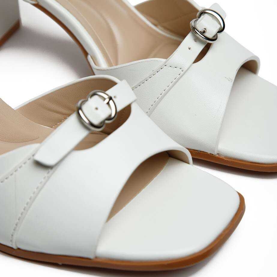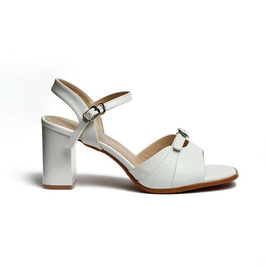 - Жіночі Босоніжки Білого Кольору з Екошкіри на Стійкому Каблуці