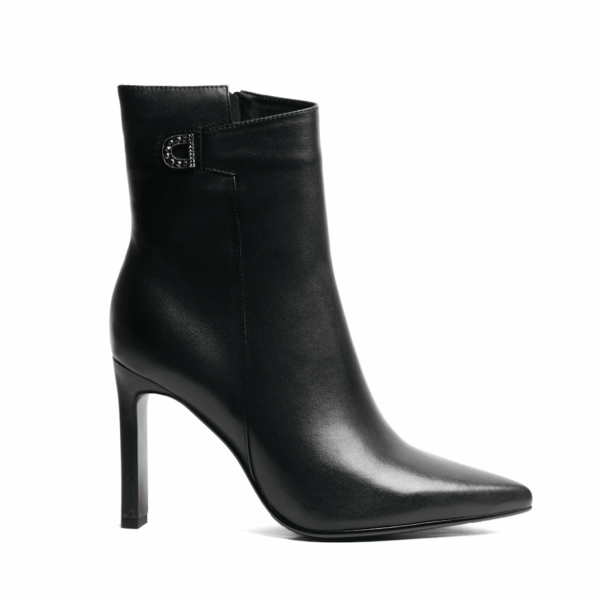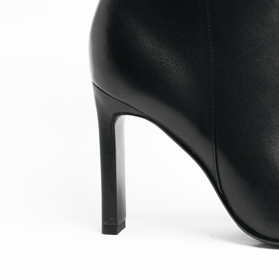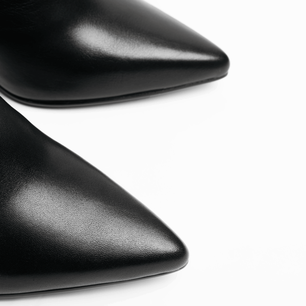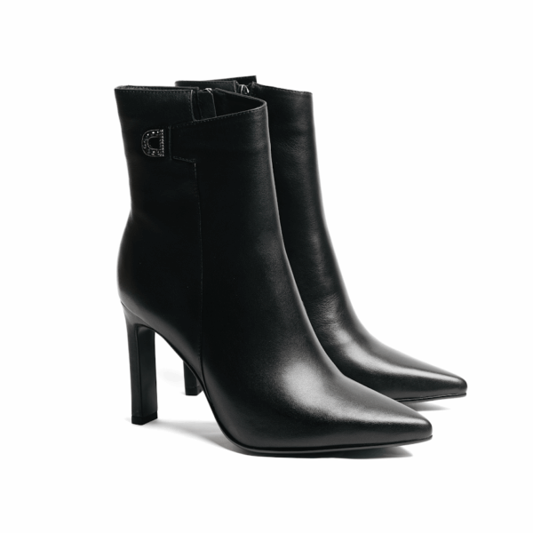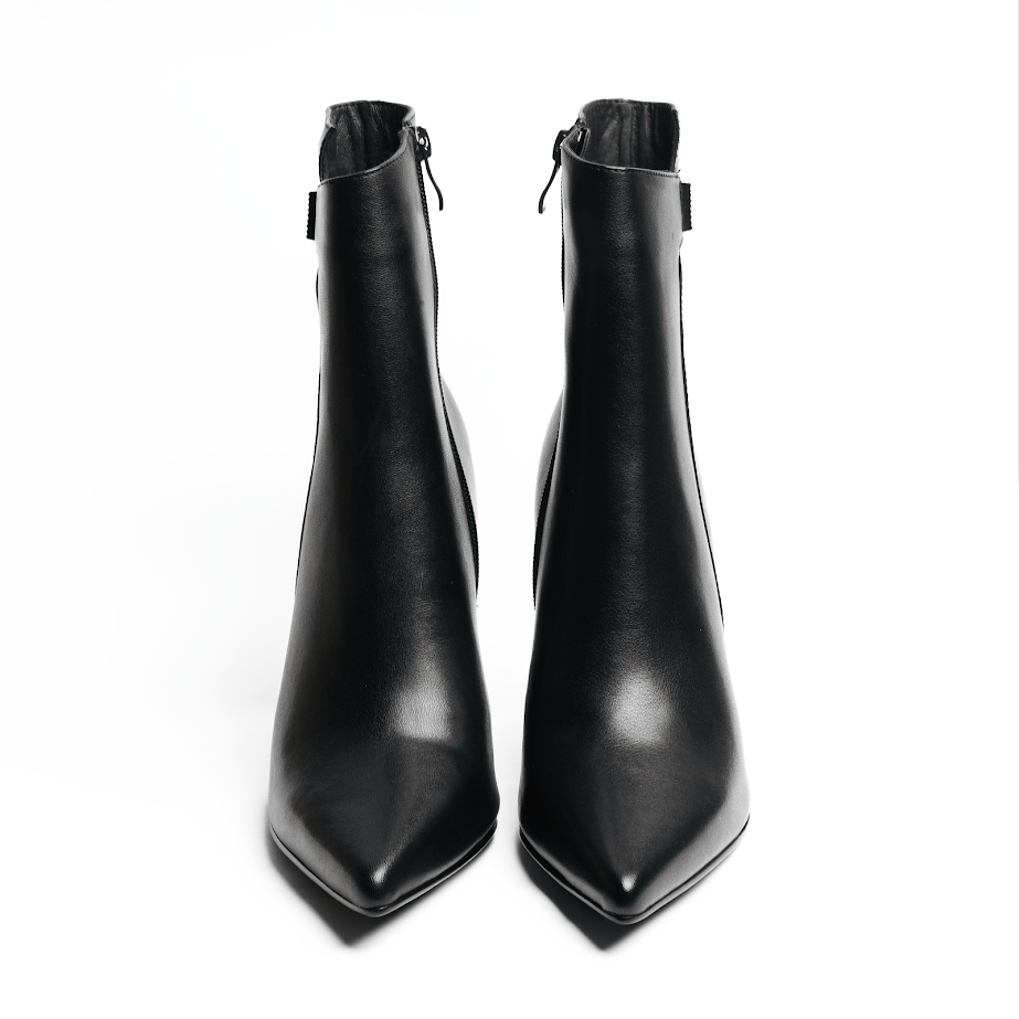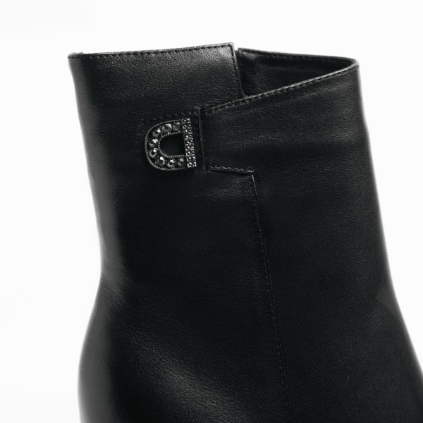 Жіночі ботильйони зі шкіри чорного кольору на підборах – стильне та практичне взуття для осінньо-зимового сезону. Натуральна шкіра забезпечує довговічність і елегантний вигляд, а підкладка з байки дарує тепло та комфорт у прохолодну погоду. Класичний дизайн із загостреним носком та стійким підбором підходить як для ділового стилю, так і для вечірніх образів. Ці шкіряні ботильйони стануть універсальною базовою парою у вашому гардеробі, легко поєднуються з сукнями, спідницями та брюками.