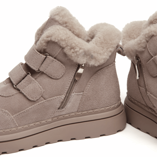 Бежеві замшеві черевики INSHOES створені, щоб поєднати стиль і тепло у холодний сезон. Їхній ніжний відтінок бежевого легко вписується у будь-який зимовий гардероб — від спортивного до більш елегантного, надаючи образу затишку й вишуканості. М’яка натуральна замша виглядає дорого та приємна на дотик, а всередині — тепла підкладка з натуральної шерсті, що дбає про комфорт навіть у мороз. Застібки на липучках додають зручності — взувати черевики можна швидко й без зайвих зусиль. Міцна рифлена підошва забезпечує стійкість і впевненість під час ходьби, навіть на слизьких поверхнях. INSHOES — коли кожна деталь продумана до дрібниць: стиль, тепло і комфорт в одному кроці.