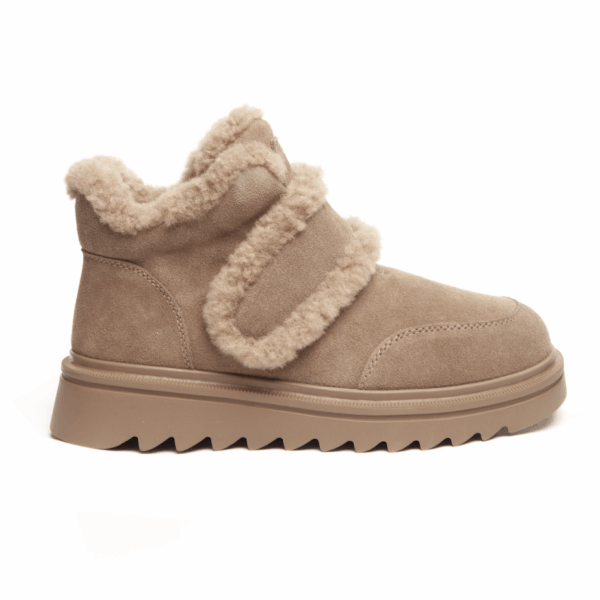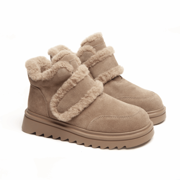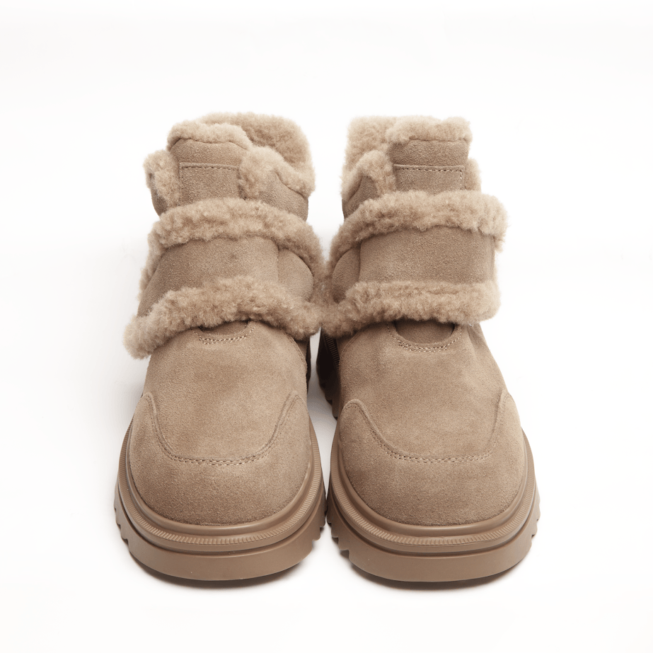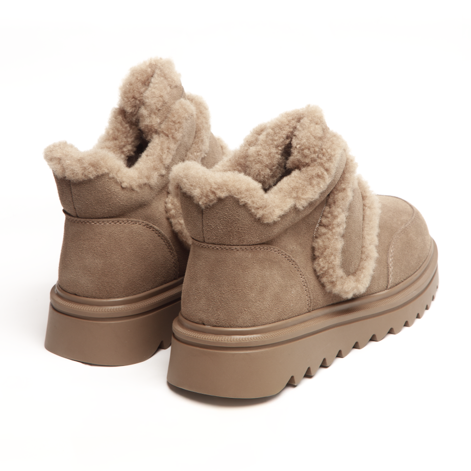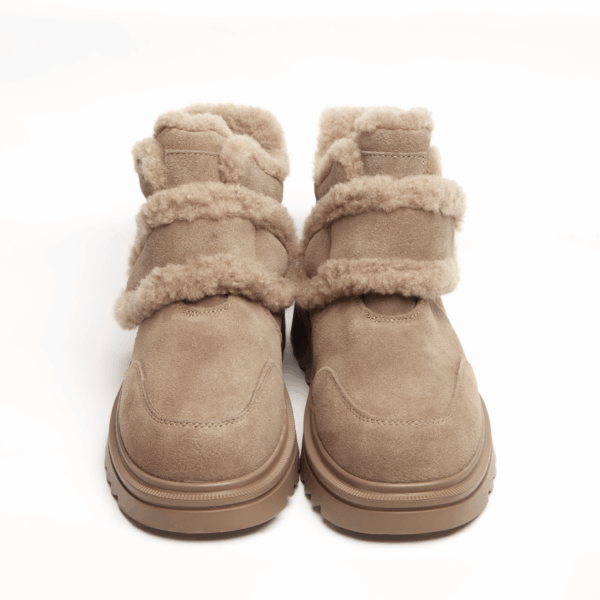 Бежеві зимові черевики INSHOES — це поєднання тепла, ніжного дизайну та щоденного комфорту. Виготовлені з натуральної замші, вони мають м’яку фактуру та виглядають по-справжньому елегантно у зимових образах. Головний акцент — пишна окантовка з натуральної шерсті, яка не лише створює стильний вигляд, а й забезпечує максимальне тепло всередині. Підкладка повністю виконана з натуральної шерсті, тож у цих черевиках затишно навіть у сильний мороз. Зручна липучка дозволяє швидко та легко фіксувати черевики на нозі, роблячи їх ідеальними для активного щоденного ритму. Рифлена підошва забезпечує хороше зчеплення з поверхнею та стійкість під час ходьби, додаючи моделі впевненості та функціональності.