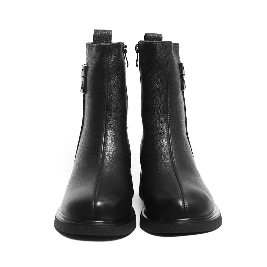 Чорні Шкіряні Черевики з декоративною пряжкою INSHOES — це поєднання комфорту, тепла та вишуканого дизайну на кожен день. М’яка шкіра створює акуратний силует, а елегантний металевий декор збоку додає моделі витонченого акценту, не перевантажуючи образ. Підкладка з натуральної шерсті забезпечує приємне тепло та комфорт у холодну погоду, зберігаючи м’якість кожного кроку. Універсальна підошва зі зручним каблуком гарантує стійкість і підходить для активного щоденного ритму. Завдяки бічній блискавці взувати черевики легко та швидко, а продуманий крій чудово виглядає як із пальтами, так і з пуховиками чи трикотажними сукнями. Якщо ти шукаєш теплі та стильні черевики на зиму, ця модель INSHOES стане ідеальним вибором для створення комфортних і водночас елегантних образів.