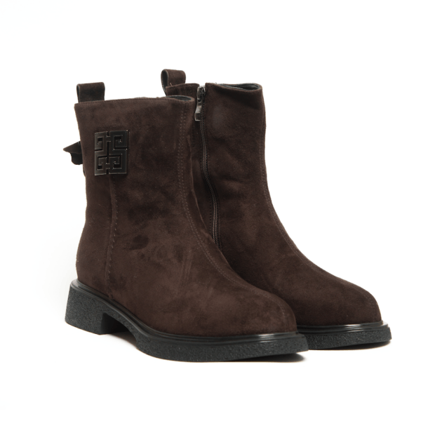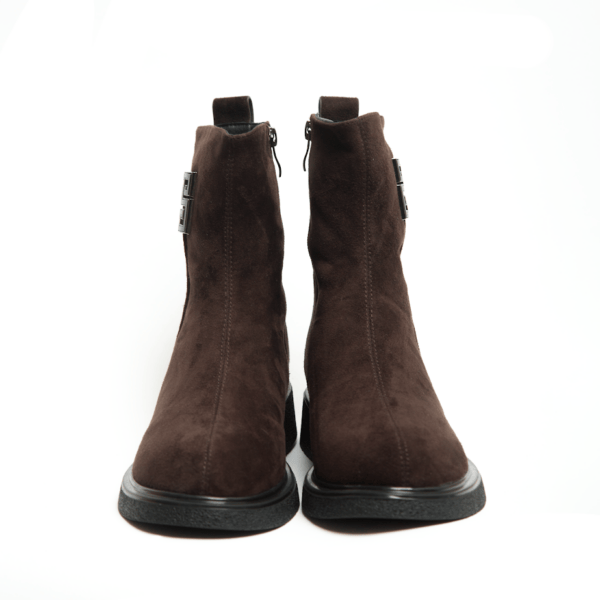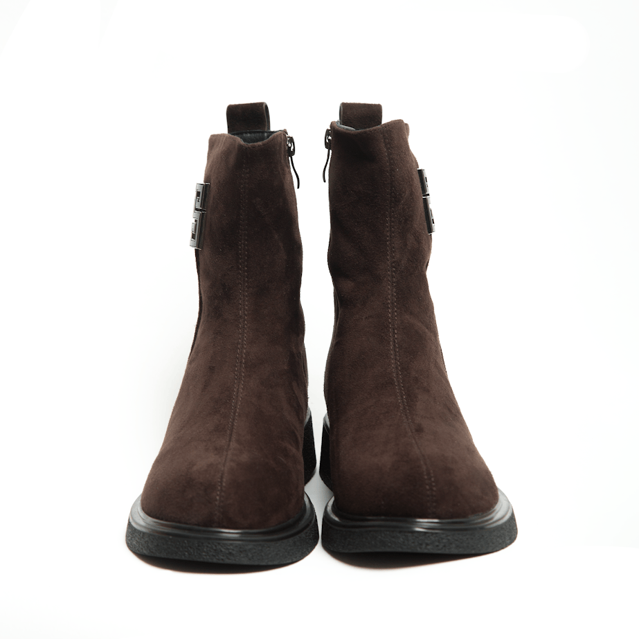 Шоколадні Замшеві Черевики з декоративною пряжкою INSHOES — це поєднання комфорту, тепла та вишуканого дизайну на кожен день. М’яка замша створює акуратний силует, а елегантний металевий декор збоку додає моделі витонченого акценту, не перевантажуючи образ. Підкладка з натуральної шерсті забезпечує приємне тепло та комфорт у холодну погоду, зберігаючи м’якість кожного кроку. Універсальна підошва зі зручним каблуком гарантує стійкість і підходить для активного щоденного ритму. Завдяки бічній блискавці взувати черевики легко та швидко, а продуманий крій чудово виглядає як із пальтами, так і з пуховиками чи трикотажними сукнями. Якщо ти шукаєш теплі та стильні черевики на зиму, ця модель INSHOES стане ідеальним вибором для створення комфортних і водночас елегантних образів.