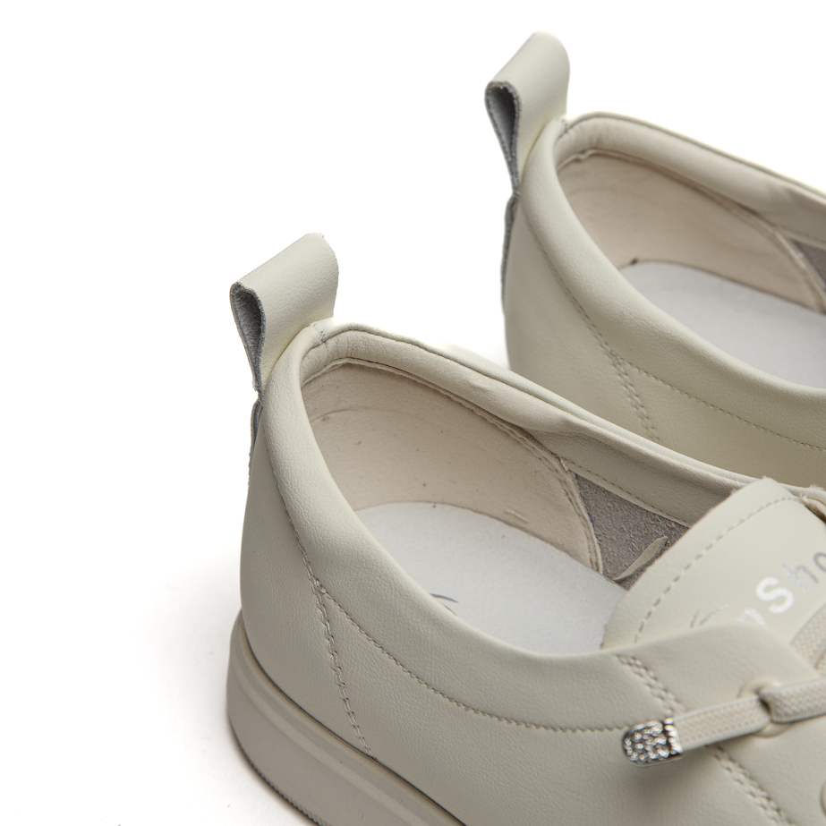 Жіночі кеди з натуральної шкіри світло-бежевого відтінку — універсальна база для щоденного гардероба. Лаконічний дизайн із мінімальною кількістю деталей виглядає стримано й сучасно, тому ця пара легко поєднується як із джинсами, так і з сукнями чи костюмами у casual-стилі. М’яка шкіра приємно огортає стопу, а внутрішня підкладка зі шкіри додає комфорту протягом усього дня. Гнучка підошва сприяє легкості рухів, а нейтральний колір гармонійно вписується у базовий гардероб. Такі кеди стануть вдалим вибором на кожен день і залишатимуться актуальними не один сезон.