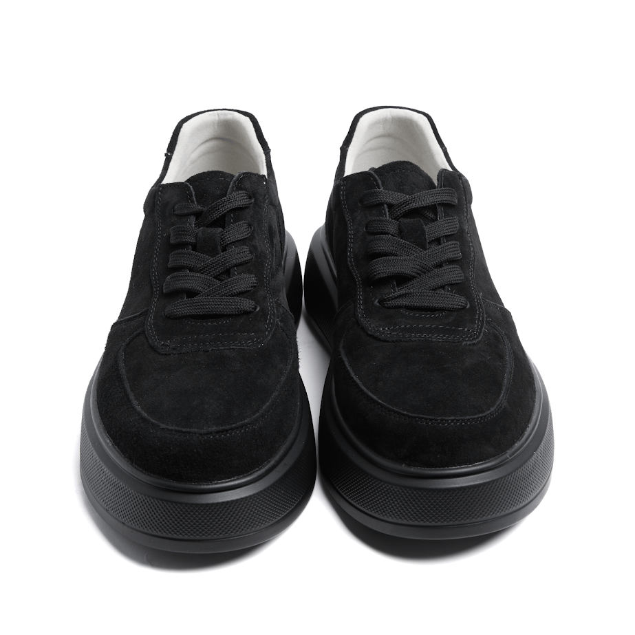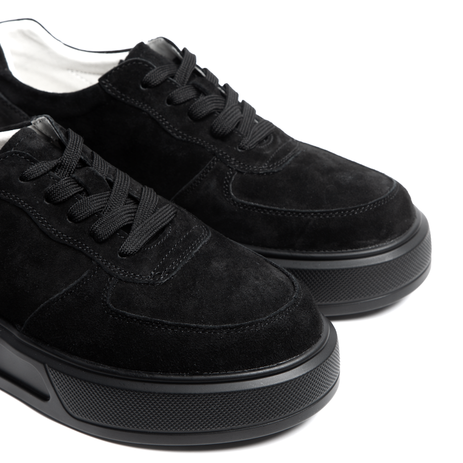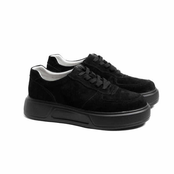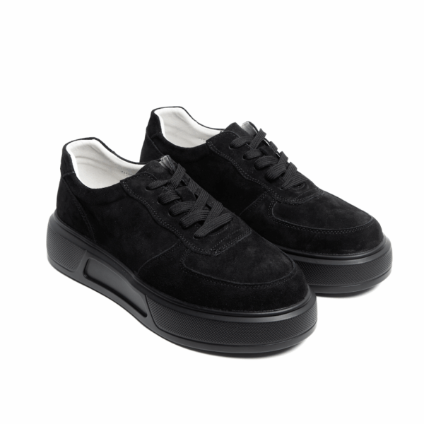 Жіночі чорні кеди з натуральної замші – стильна базова модель, яка поєднує лаконічний дизайн та комфорт. Глибокий чорний колір додає універсальності, роблячи цю пару доречною як у повсякденних луках, так і у більш стриманих образах. Верх виконаний із натуральної замші, яка виглядає благородно та тримає форму, а всередині – підкладка з натуральної шкіри для максимального комфорту при щоденному носінні. Масивна підошва додає сучасного акценту та робить кроки легкими й впевненими. Ці кеди стануть зручною та практичною парою для будь-якого сезону, підкреслюючи сучасний стиль своєї власниці.
