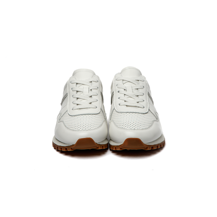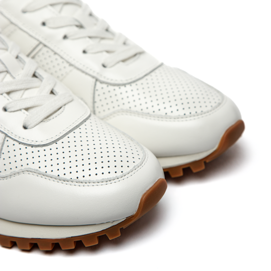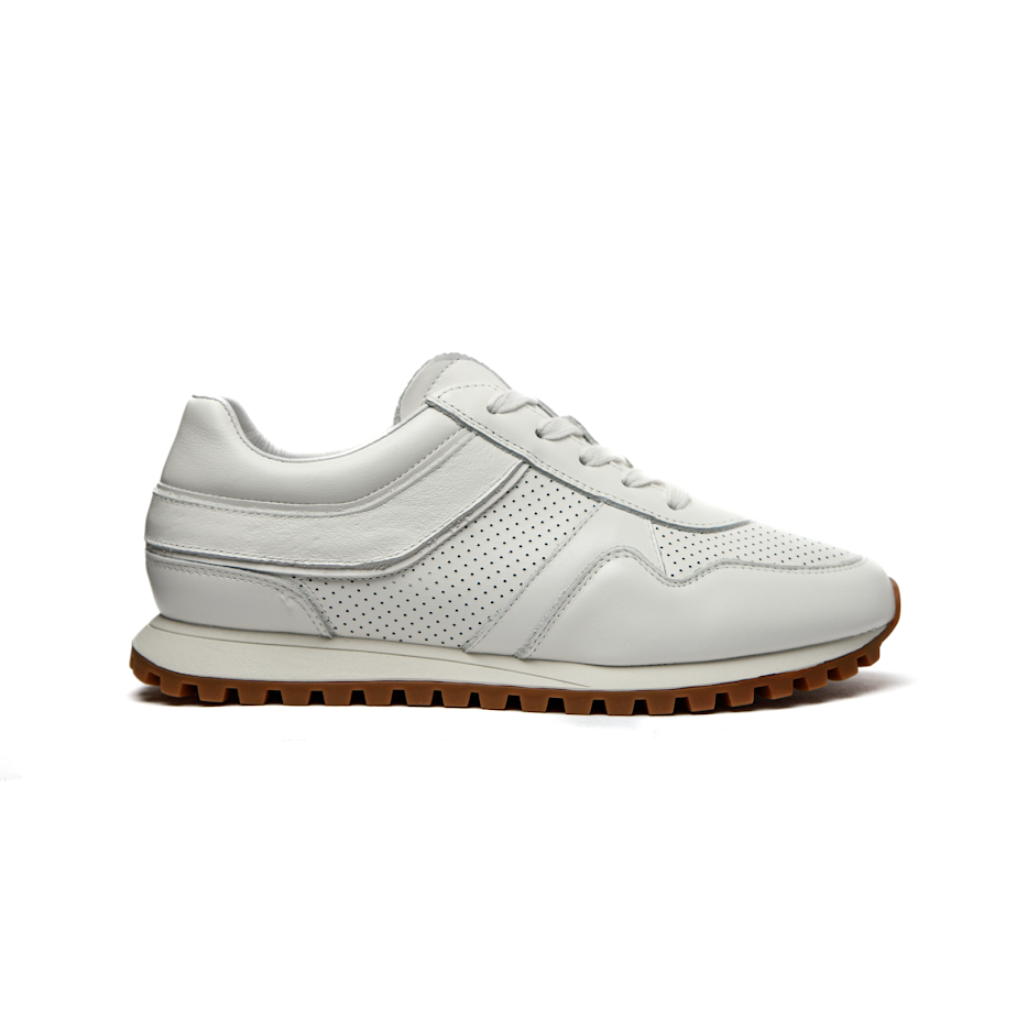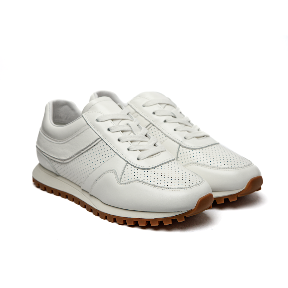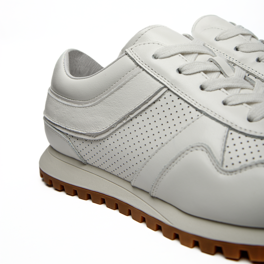 - Жіночі Кросівки З Шкіри У Білому Кольорі З Перфорацією